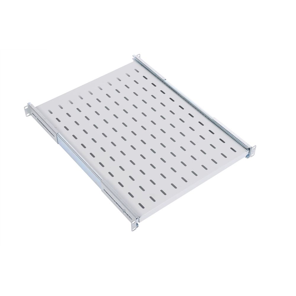Полка 19" 1U перфорированная имеет телескопические направляющие, обеспечивающие плавное выдвижение. Монтажные кронштейны фиксируют полку к вертикальным направляющим шкафов и стоек в четырёх местах. Глубина монтажных кронштейнов регулируется, что позволяет устанавливать полку на необходимую глубину.