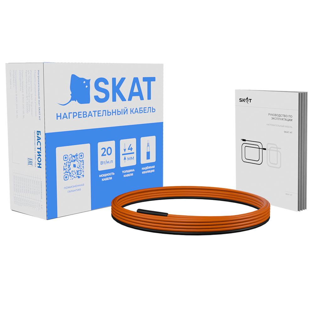 Нагревательная секция SKAT HT состоит из отрезка тонкого двухжильного нагревательного кабеля, с одной стороны замуфтирован, с другой соединён с силовым шнуром посредством опрессовки, обеспечивая повышенную надёжность. Место соединения силового шнура и нагревательного кабеля герметично закрывается соединительной муфтой. Температура на оболочке нагревательного мата +47°С (при температуре окружающего воздуха +20°С). Наличие двойного экрана для устранения электромагнитных излучений и защиты от поражения электрическим током. Высокопрочная и теплостойкая изоляция из ПВХ-пластиката, которая не распространяет горения.