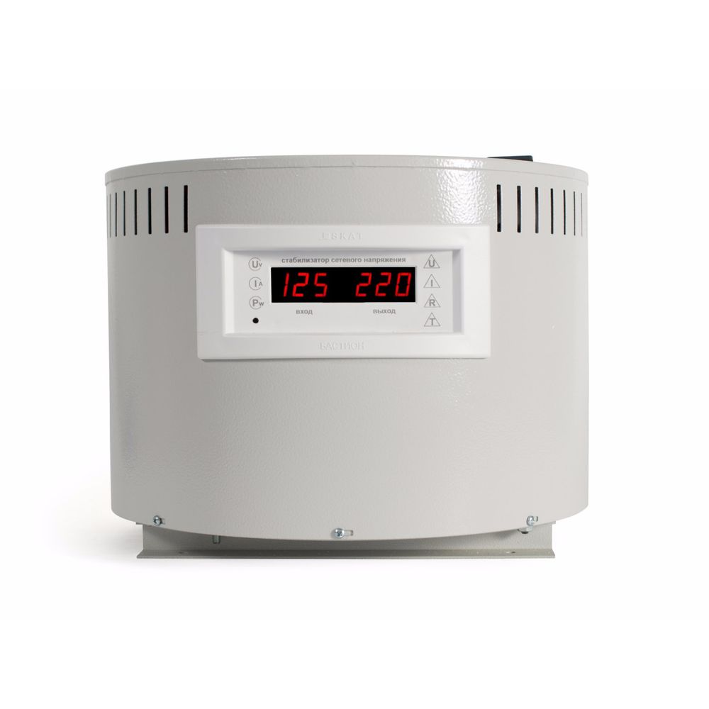 Стабилизатор напряжения для всего дома. Мощность нагрузки до 5 кВА, круглый корпус «Башня». Микропроцессороное управление. Диапазон входного напряжения, 125—290 В. Стабилизация вольтдобавочного типа на симисторных ключах, 7 ступеней регулирования. Цифровой дисплей отображает реальное напряжение, ток, мощность по входу и выходу. Конвективное охлаждение без вентилятора, бесшумная работа. Защитное отключение при аварийно низком/высоком напряжении. Гарантия 5 лет. Застраховано «Ингосстрах» 3 000 000 руб.