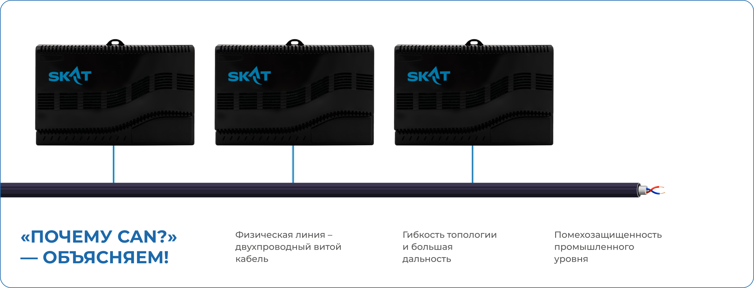 CAN обеспечивает дальность линии до 300 метров и обуславливает гибкость в проектируемой топологии.