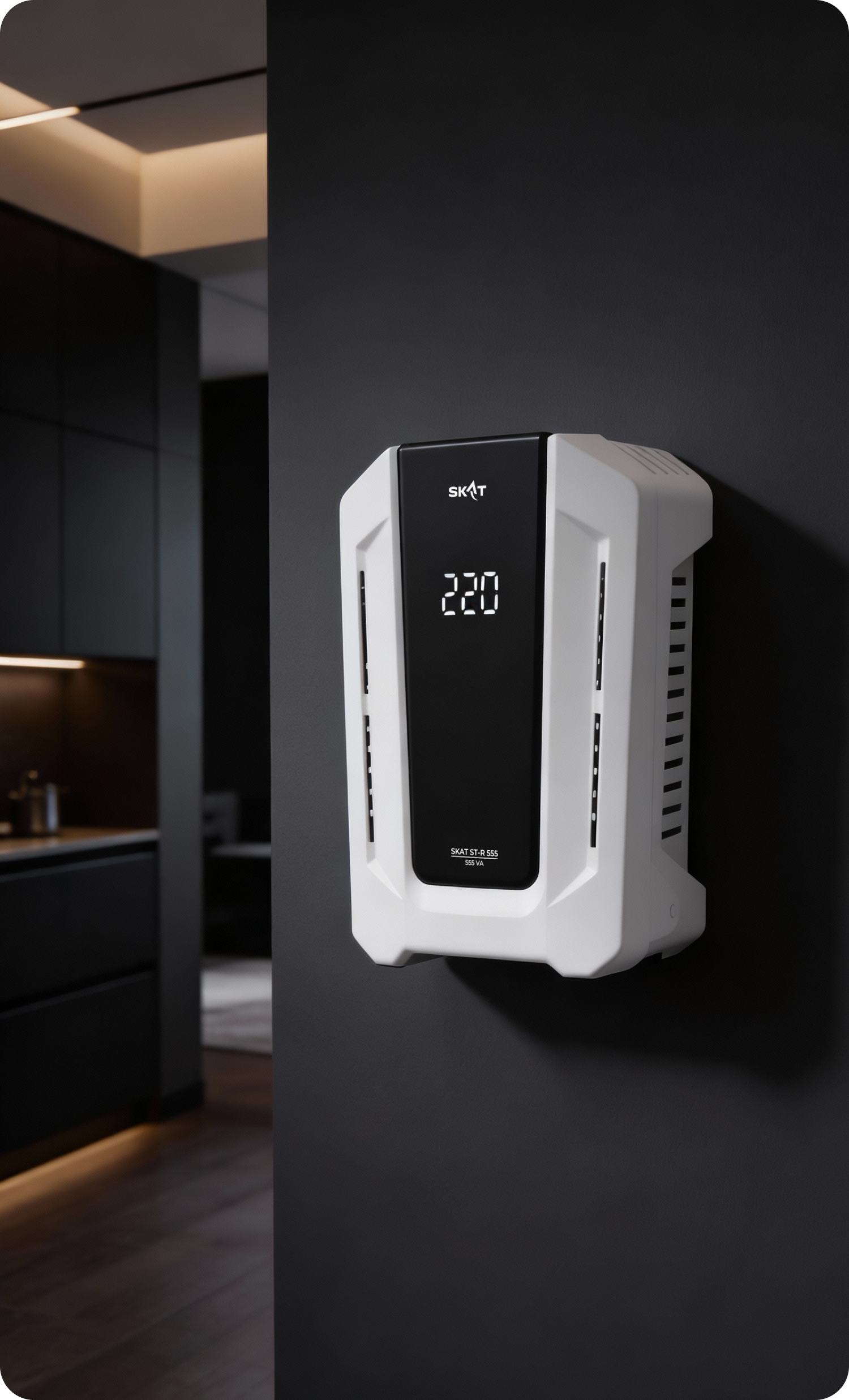 Стабилизатор напряжения SKAT ST-R предназначен для работы с газовыми котлами и бытовой техникой, он осуществляет стабилизацию напряжения сети в целях повышения качества энергоснабжения.