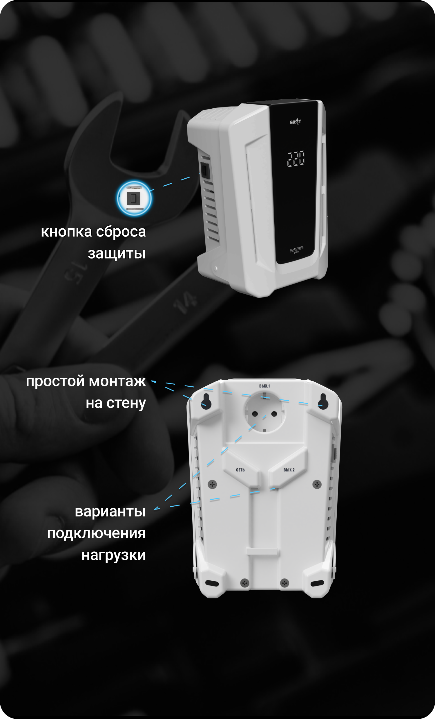 | ✔ Простое подключение по типу удлинителя позволяет быстро установить стабилизатор без дополнительных затрат | |