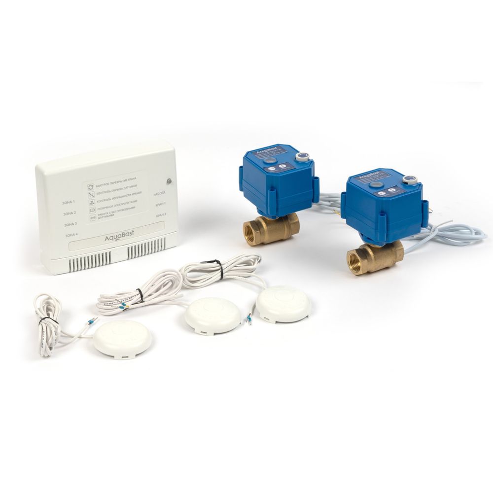 Система AQUABAST LINE КВАРТИРА ½" обеспечивает полную защиту вашего имущества от протечек воды. Высокочувствительные датчики мгновенно среагируют на протечку, краны с электроприводами перекроют воду, а благодаря встроенной Li-ion батарее AQUABAST сохранит имущество и избавит от неприятных последствий потопа даже при выключенном свете.
