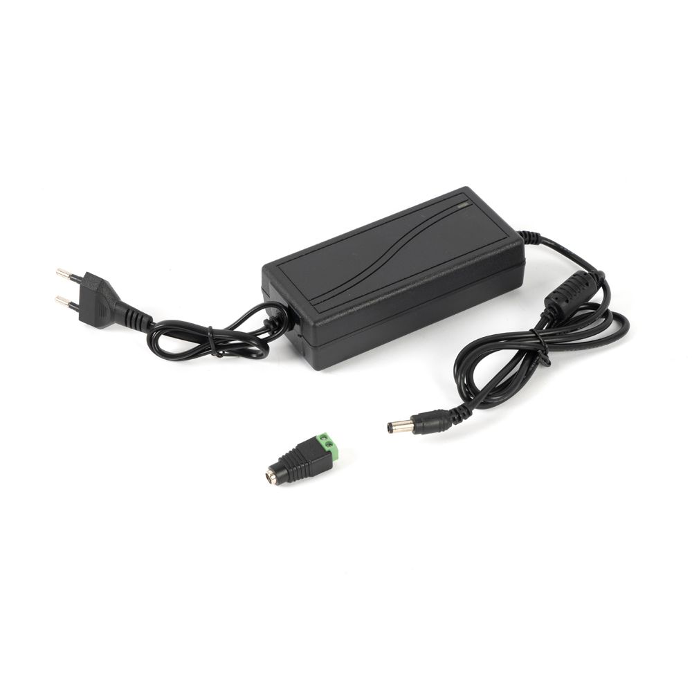 Изделие представляет собой источник питания постоянного тока без возможности организации резерва и подключения АКБ. Прибор работает от переменного входного напряжения в диапазоне от 110 до 240 Вольт. Блок питания выполнен ы компактном пластиковом корпусе. Подключение к сети электропитания осуществляется напрямую в розетку, дополнительных манипуляций с проводами при подключении не требуются. Видеокамера подключается при помощи стандартного штекера длиной 5,5 мм м шириной 2,1 мм. Для случаев, когда необходимо подключение нагрузки не оборудованной гнездом под стандартный штекер, в комплекте присутствует удобный переходник на клеммы. Компактные размеры корпуса позволяют легко разместить блок питания даже при дефиците свободного места на объекте. Для безопасной эксплуатации подключаемого оборудования в приборе предусмотрена защита от короткого замыкания.