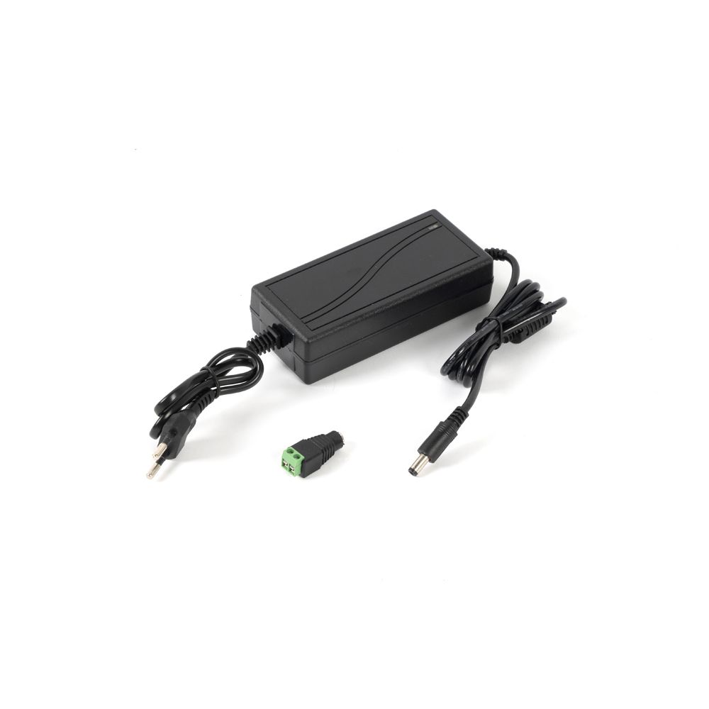Изделие представляет собой источник питания постоянного тока без возможности организации резерва и подключения АКБ. Прибор работает от переменного входного напряжения в диапазоне от 110 до 240 Вольт. Блок питания выполнен ы компактном пластиковом корпусе. Подключение к сети электропитания осуществляется напрямую в розетку, дополнительных манипуляций с проводами при подключении не требуются. Видеокамера подключается при помощи стандартного штекера длиной 5,5 мм м шириной 2,1 мм. Для случаев, когда необходимо подключение нагрузки не оборудованной гнездом под стандартный штекер, в комплекте присутствует удобный переходник на клеммы. Компактные размеры корпуса позволяют легко разместить блок питания даже при дефиците свободного места на объекте. Для безопасной эксплуатации подключаемого оборудования в приборе предусмотрена защита от короткого замыкания.