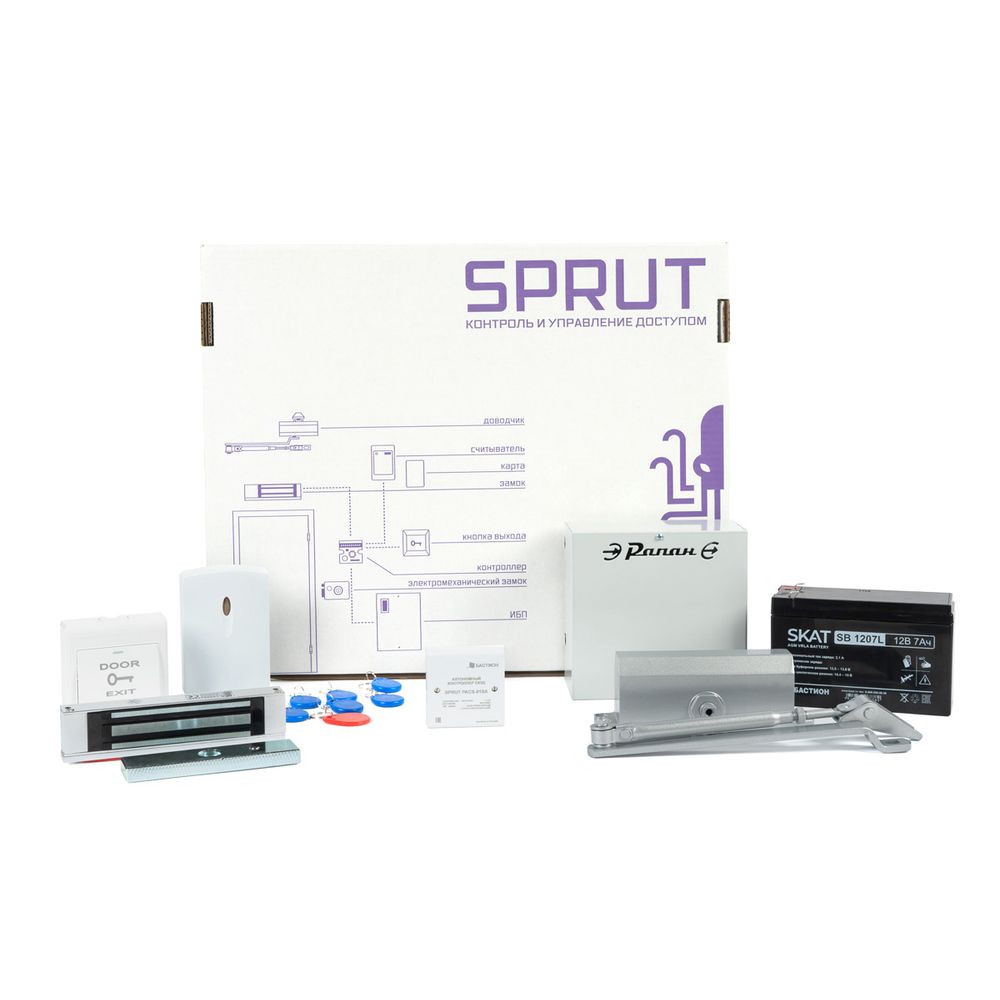 Комплект системы контроля доступа (СКУД) SPRUT – готовое решение, включающее в себя устройства, которые необходимы для организации автономной системы контроля доступа. После монтажа устройств из комплекта Вы получите надежно запирающуюся дверь с доводчиком, быстро открывающуюся при помощи электронных ключей, отсекающую нежелательных посетителей. Комплект рассчитан на установку человеком, не имеющим специальных знаний по монтажу и настройке СКУД, поэтому для облегчения задачи по установке есть подробные инструкции в бумажном формате и на видео.