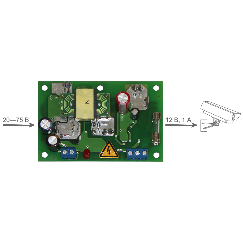 Преобразователь напряжения 12 В предназначен для питания нагрузки постоянным стабилизированным напряжением 12 В с потребляемым током до 1 А от входного источника питания постоянного тока с напряжением в пределах от 20 до 75 В