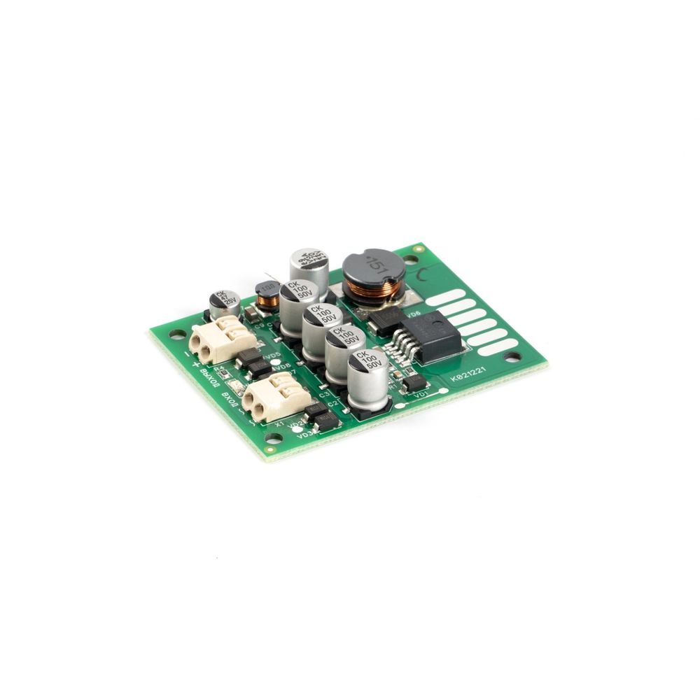 ПН-24АС/12-1,0 (встраиваемый модуль на печатной плате размером 64х52 мм) преобразует входное напряжение от 19 до 27 В переменного тока в выходное стабилизированное напряжение 12 В постоянного тока для питания нагрузки с током потребления до 1 А.