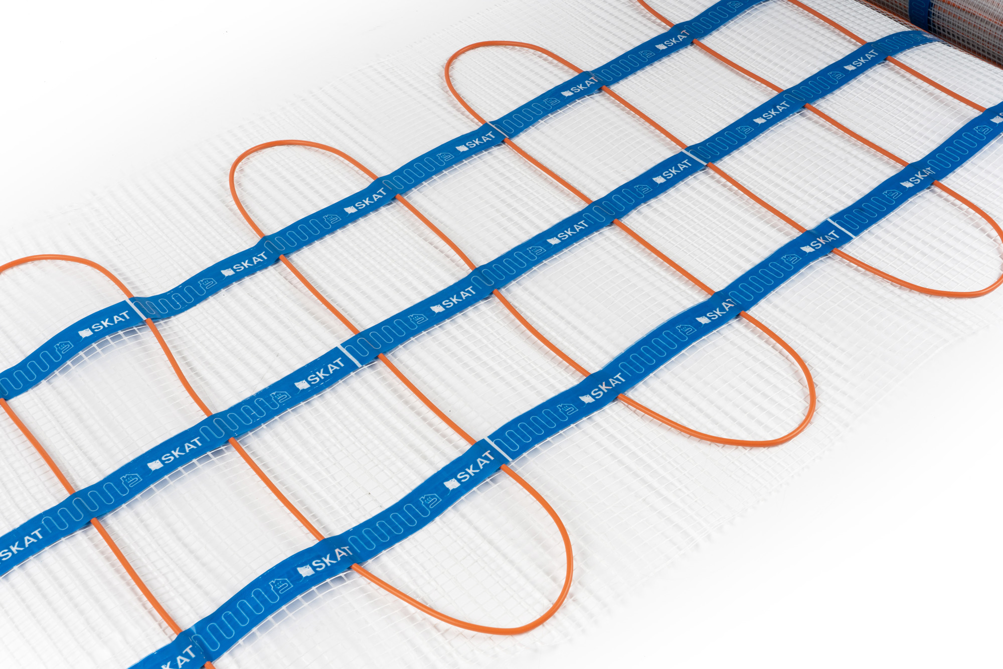 Электрический теплый пол SKAT HT MAT состоит из отрезка тонкого двухжильного нагревательного кабеля, уложенного змейкой и закреплённого на стеклосетке. Нагревательный кабель с одной стороны замуфтирован, с другой соединён с силовым шнуром посредством опрессовки. Место соединения силового шнура и нагревательного кабеля герметично закрывается соединительной муфтой. Температура на оболочке нагревательного мата +47°С (при температуре окружающего воздуха +20°С).