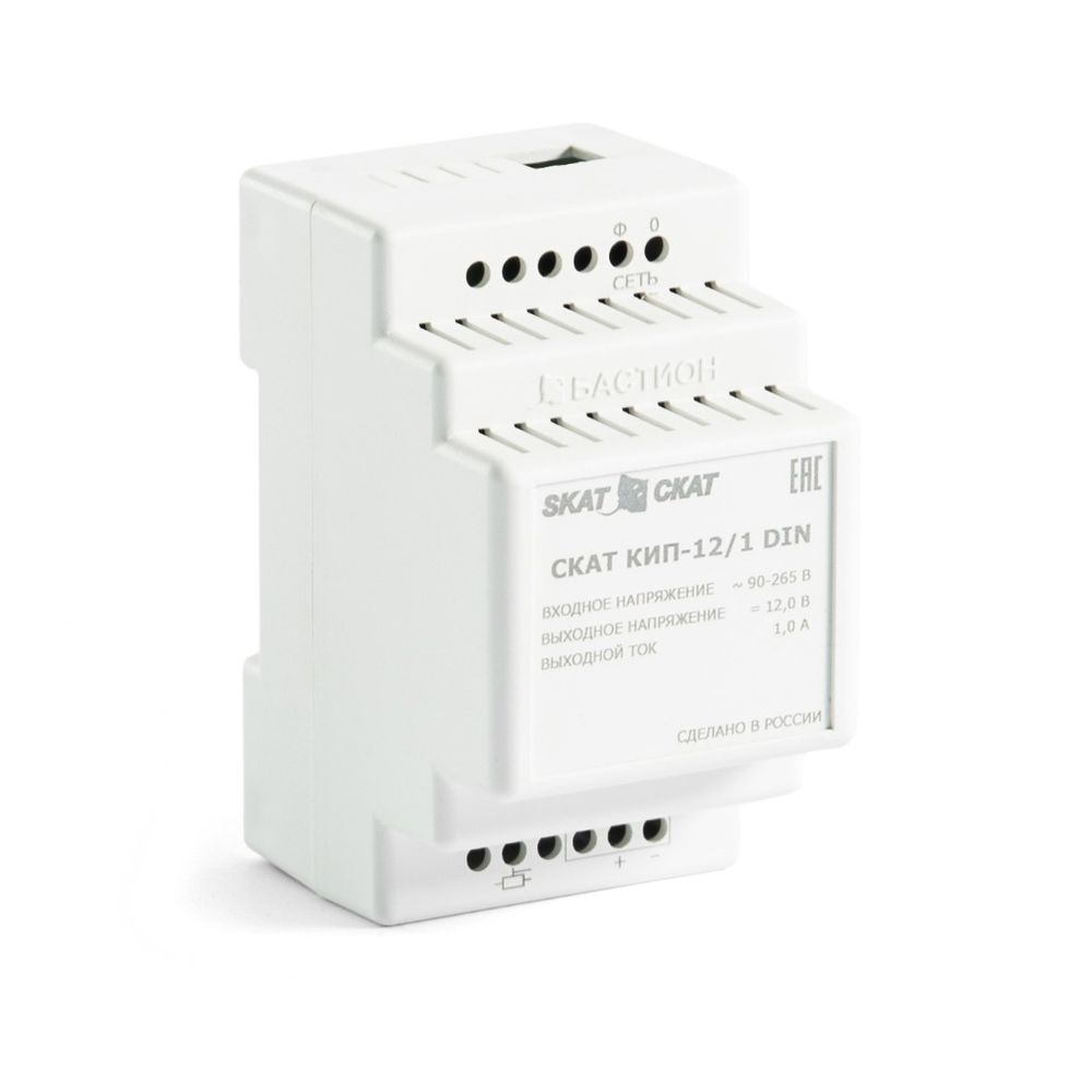 Источник питания СКАТ КИП-12/1 DIN предназначен для питания радиоэлектронных устройств номинальным напряжением 12 В.