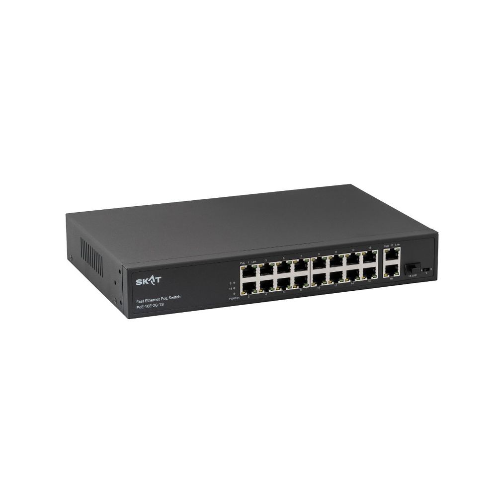 SKAT PoE-16E-2G-1S представляет собой специализированный неуправляемый PoE коммутатор для использования в системах видеонаблюдения и безопасности. Характеризуется высокой надежностью работы благодаря защите от электростатических разрядов и перепадов напряжения, позволяет организовать качественную передачу информации в сети Ethernet.