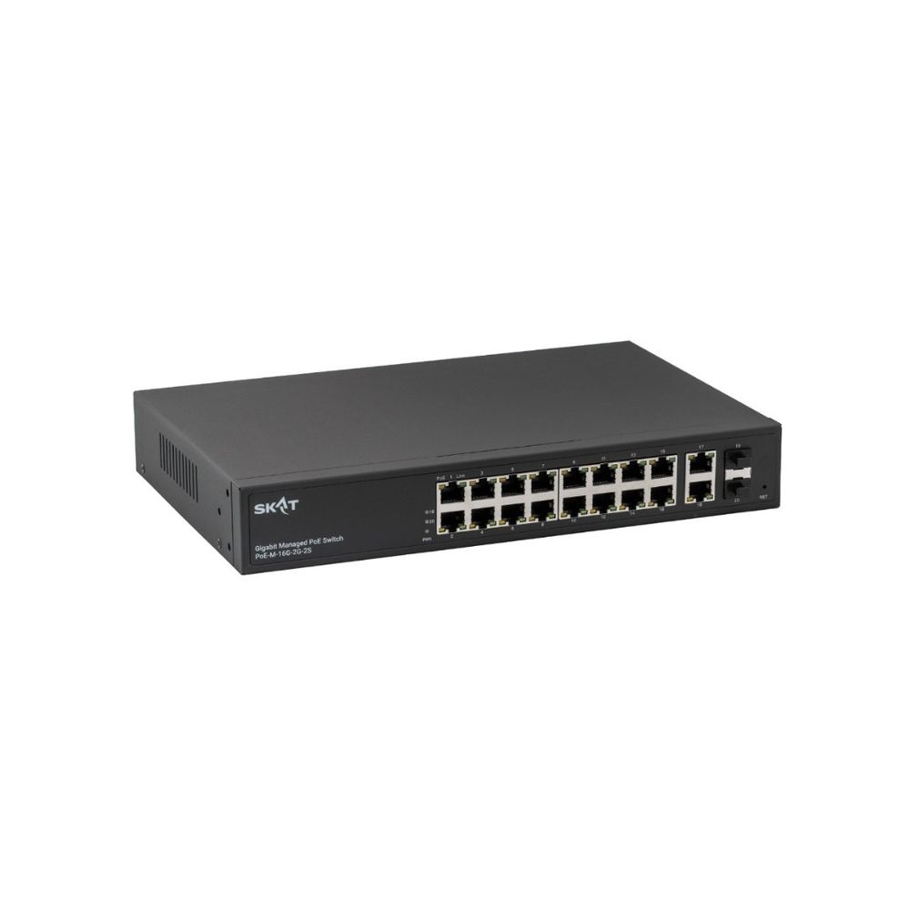 SKAT PoE-M-16G-2G-2S представляет собой специализированный управляемый PoE-коммутатор для построения управляемых сетей уровня L2+ в системах коммутации, видеонаблюдения, IP-телефонии и безопасности.