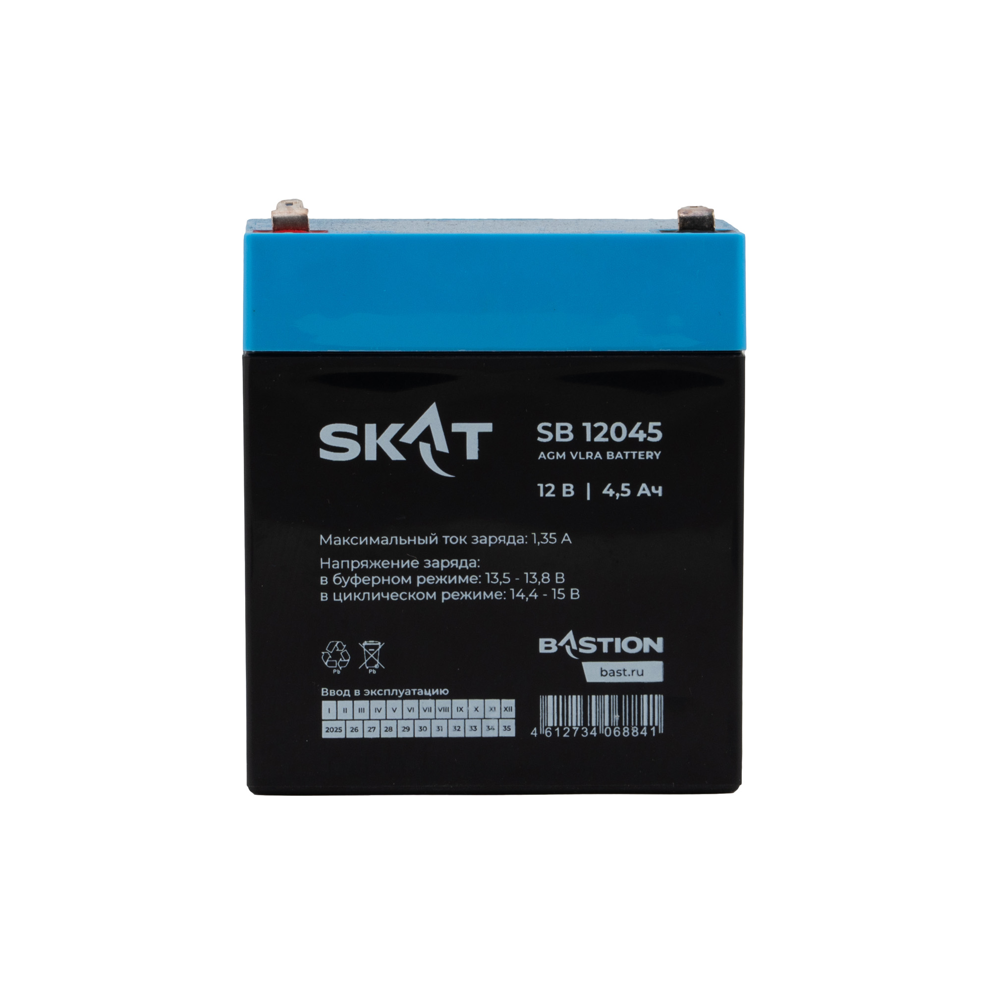 Аккумулятор герметичный свинцово-кислотный необслуживаемый SKAT SB 12045 производится по технологии AGM (Absorbent Glass Mat) с системой рекомбинации газов VRLA и предназначен для использования в составе системы резервного питания.