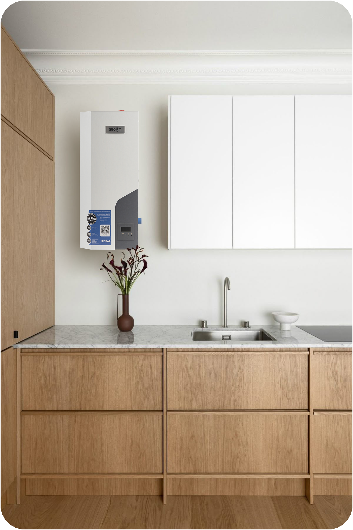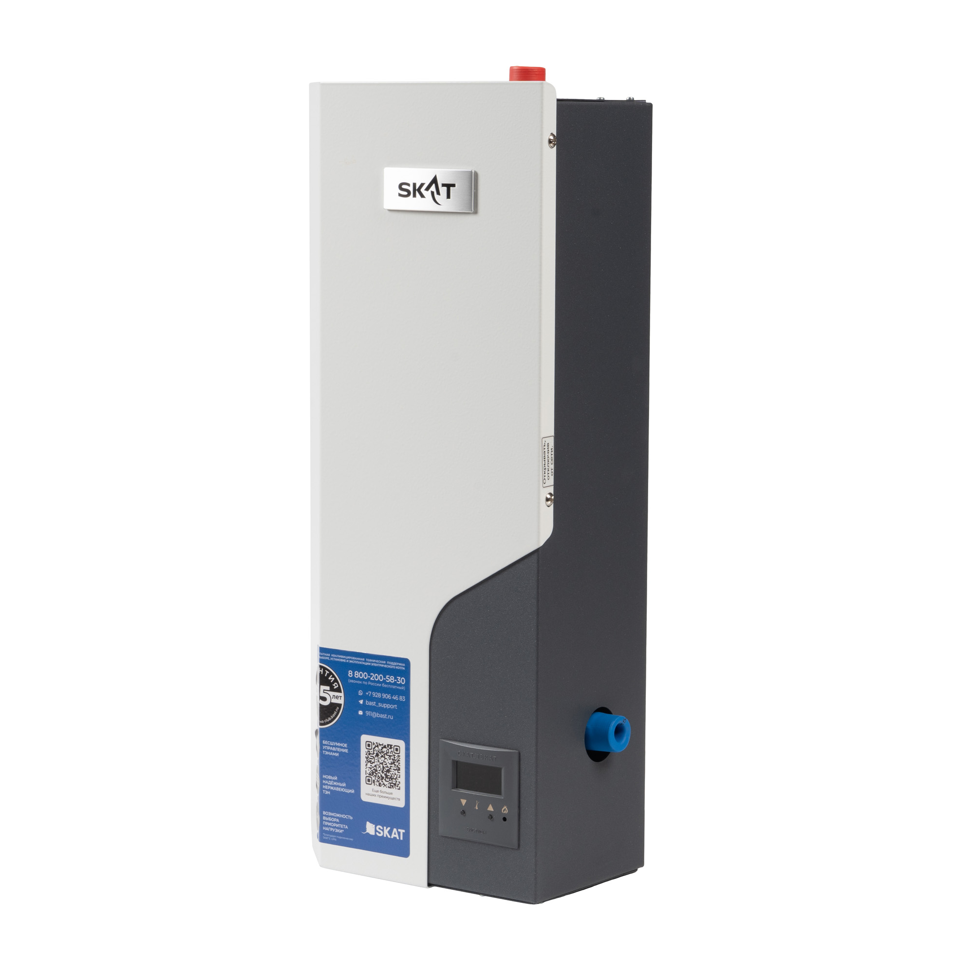 Электрокотлы SKAT SILVER STS — это безупречное сочетание технологичности, надежности и эстетики: бесшумная работа, продуманная инженерия и современное симисторное управление обеспечивают стабильный, плавный и энергоэффективный обогрев, адаптируясь к потребностям объекта без резких скачков мощности. Их лаконичный, сдержанно-элегантный корпус органично встраивается в любой интерьер: от современной городской квартиры до представительского офиса или загородного дома, не нарушая визуальной гармонии пространства. Подчеркивая уверенность в качестве, мы увеличили гарантийный срок на всю линейку SKAT SILVER STS: это не просто обещание, а подтвержденная практикой ответственность за долгую и безотказную службу каждого котла.