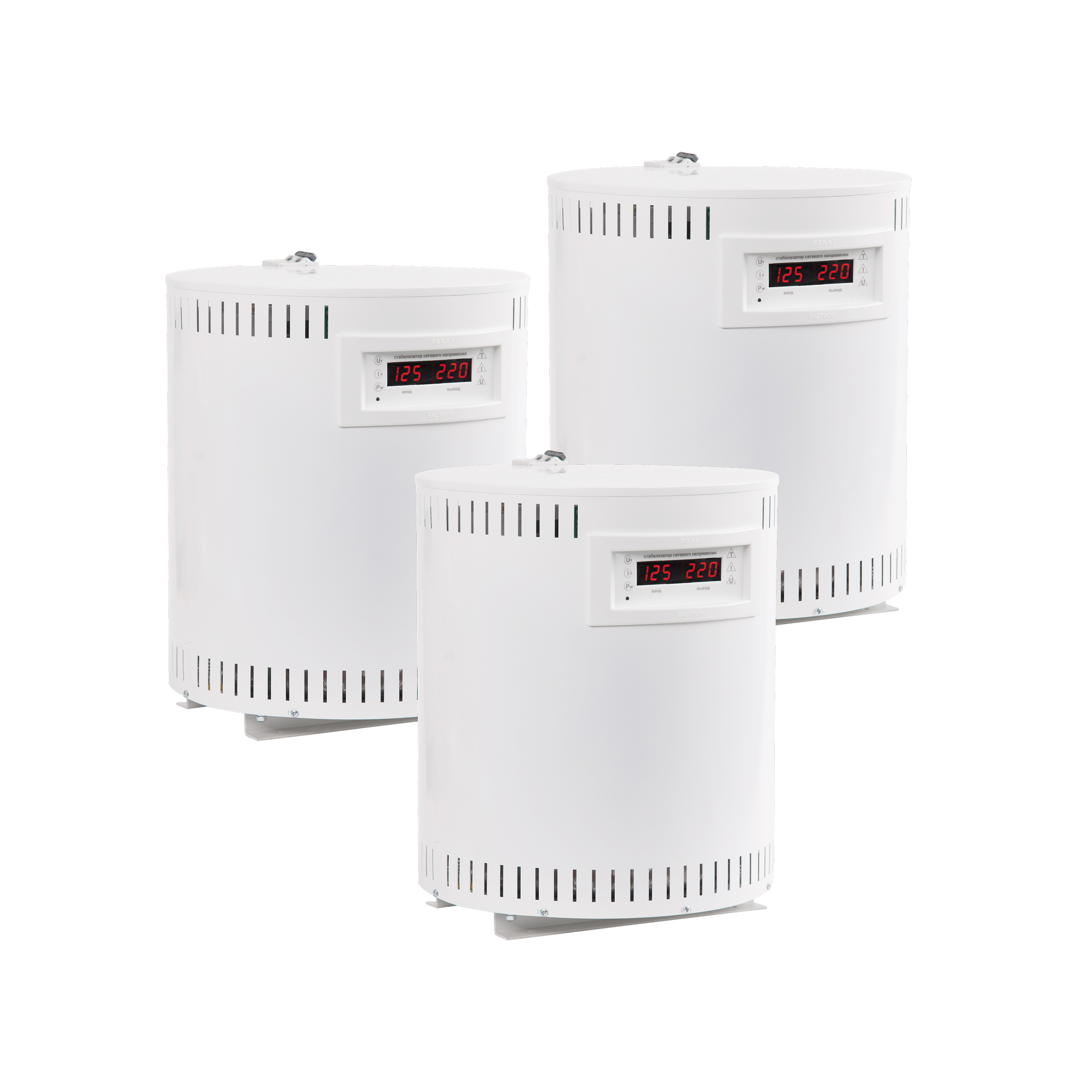 Комплект из трёх стабилизаторов SKAT STP - готовое универсальное решение для защиты электроприборов в трёхфазной сети. Подходят для бытового или коммерческого использования. Предназначены для защиты устройств с суммарной потребляемой мощностью 60 кВА.