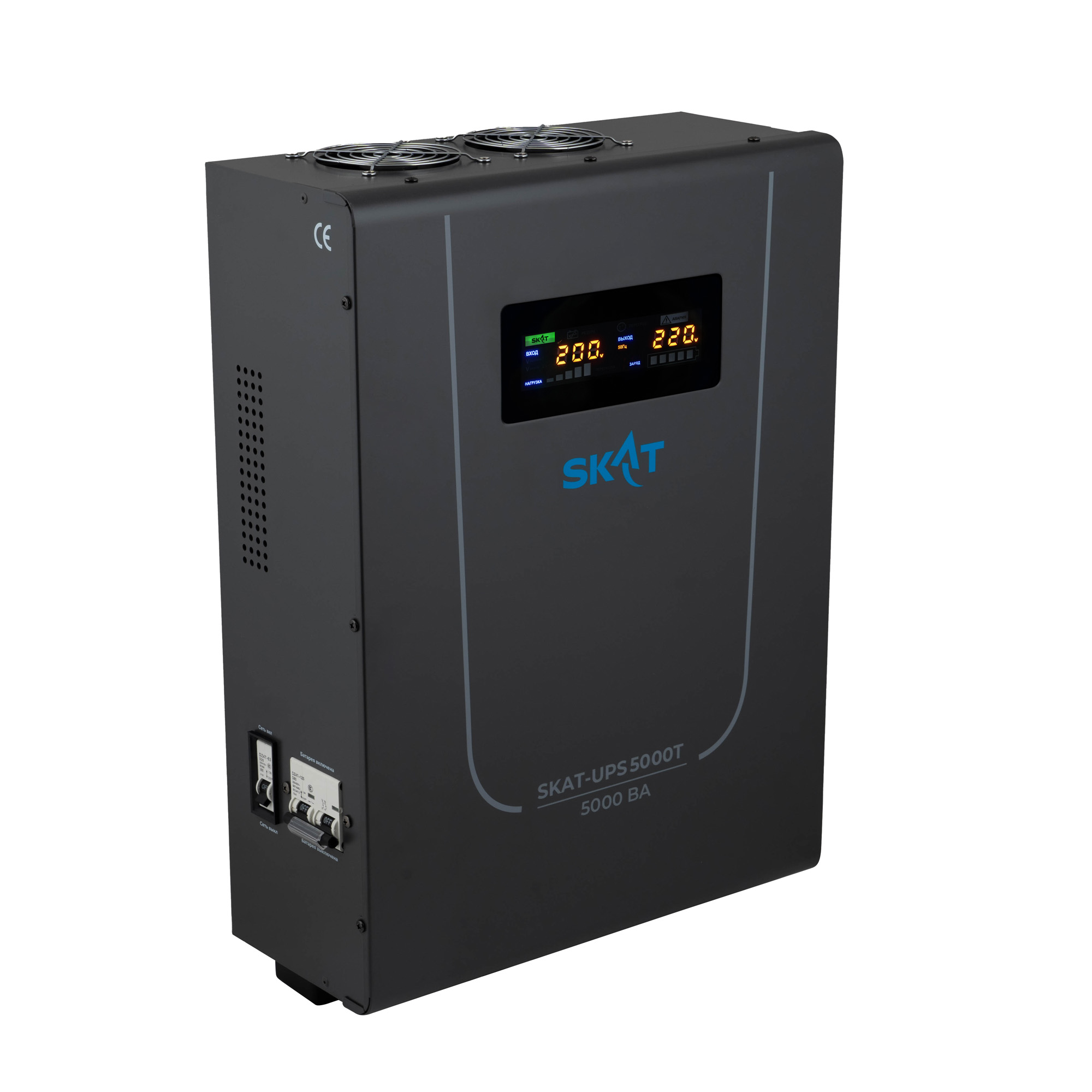 SKAT-UPS 5000T — это линейно-интерактивный источник бесперебойного питания, разработанный для обеспечения надежного электроснабжения отопительных котлов и другого чувствительного оборудования. В случае отключения электроэнергии устройство автоматически переключается на питание от подключённых к нему аккумуляторных батарей, обеспечивая стабильное и продолжительное электропитание.