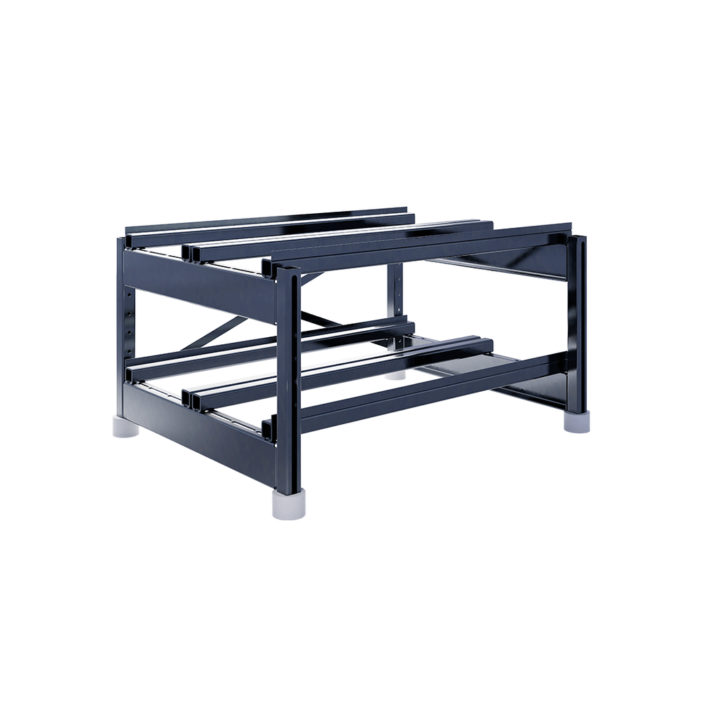 Сборно-разборная система позволяет подстраивать положение поперечных балок, исходя из размеров аккумулятора, а также перемещать ярусы в допустимых диапазонах.