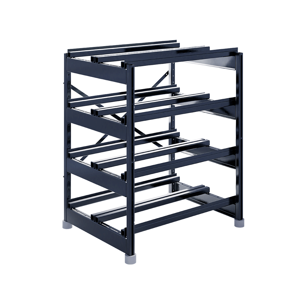 Сборно-разборная система позволяет подстраивать положение поперечных балок, исходя из размеров аккумулятора, а также перемещать ярусы в допустимых диапазонах.