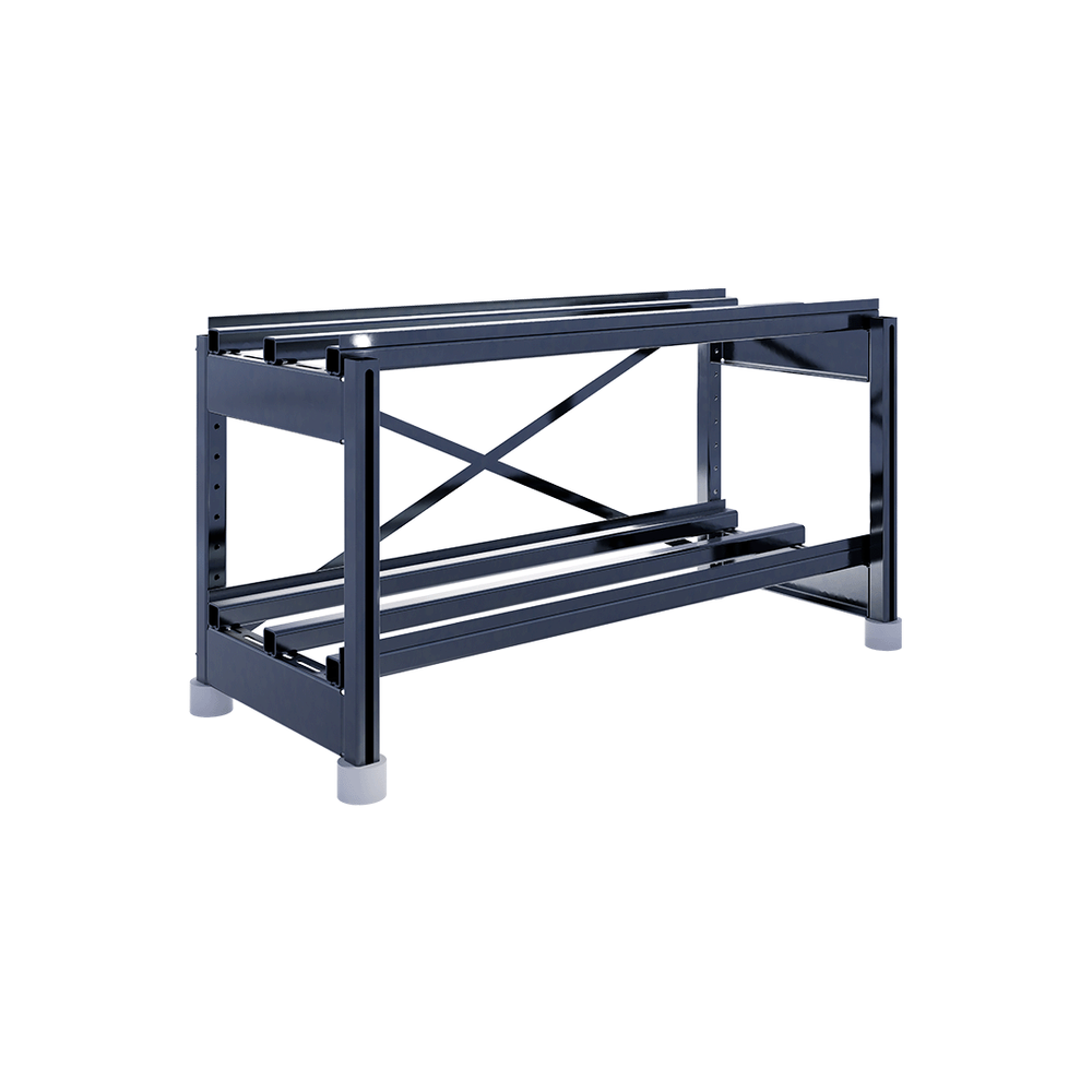 Сборно-разборная система позволяет подстраивать положение поперечных балок, исходя из размеров аккумулятора, а также перемещать ярусы в допустимых диапазонах.