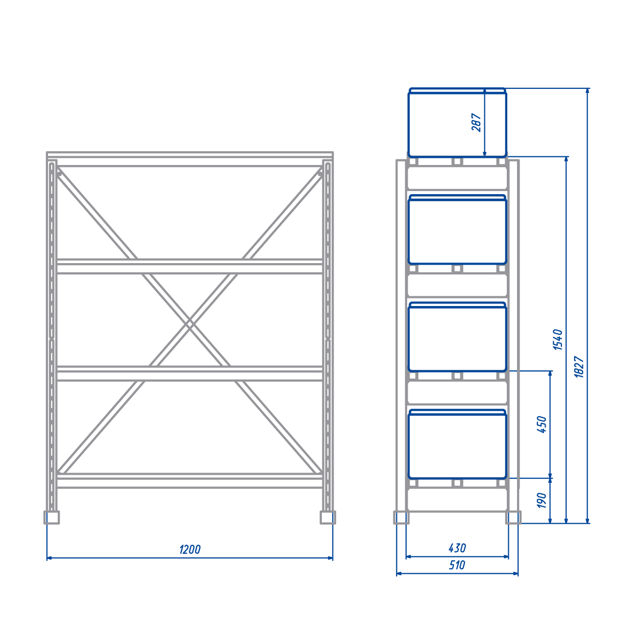 Сборно-разборный стеллаж SKAT SBR-100FT-10-1-4 предназначен для компактного размещения 40 фронт-терминальных свинцово-кислотных герметизированных аккумуляторных батарей емкостью 100 Ач.
