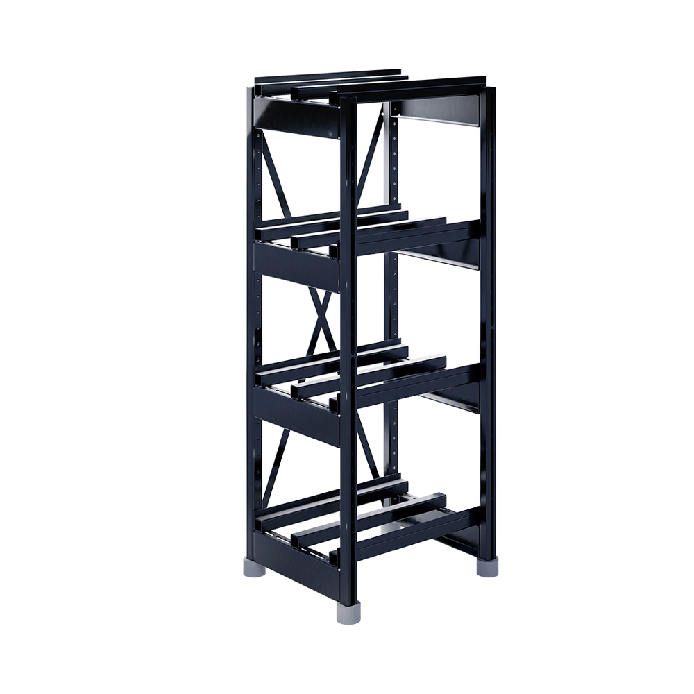 Сборно-разборная система позволяет подстраивать положение поперечных балок, исходя из размеров аккумулятора, а также перемещать ярусы в допустимых диапазонах.
