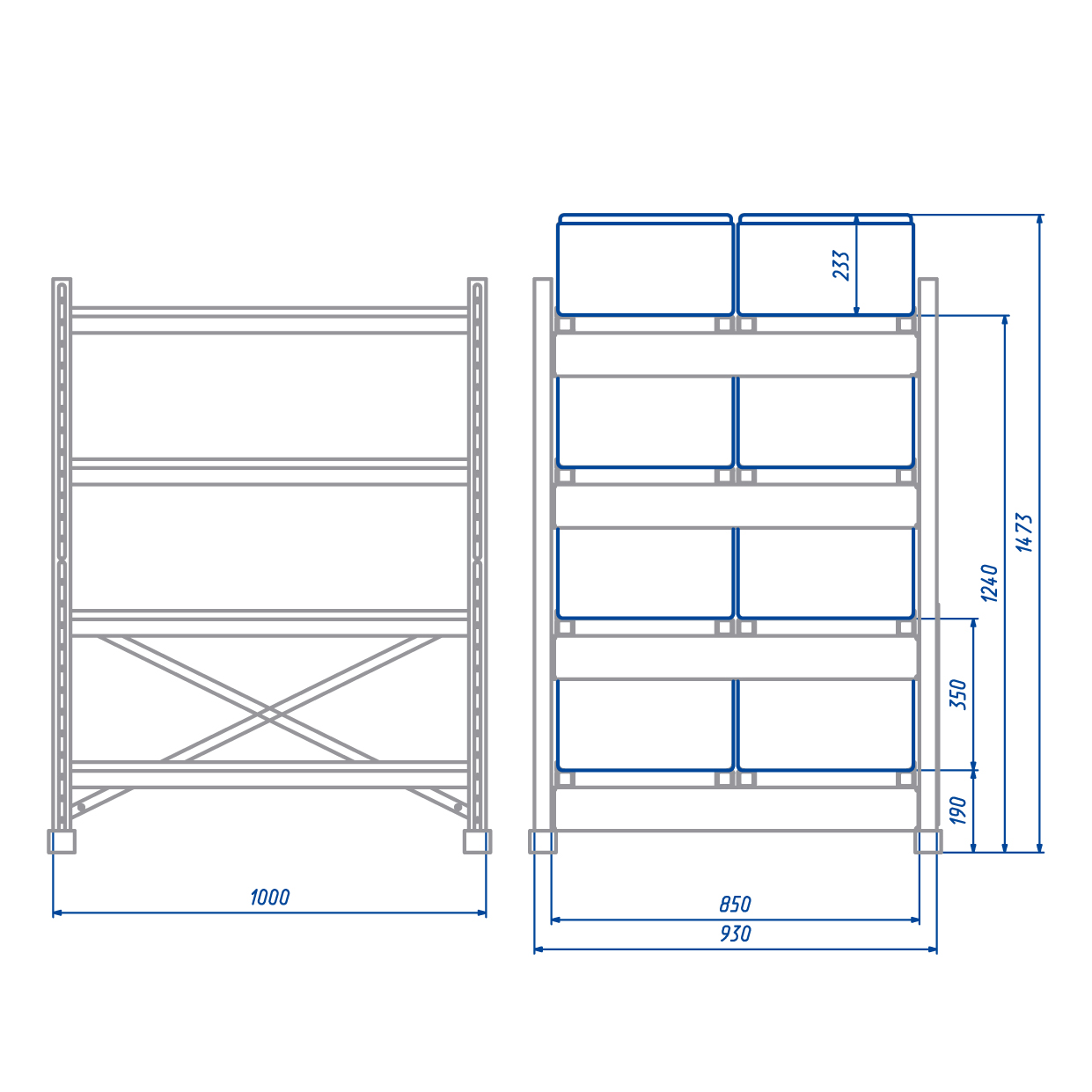 Металлические элементы стеллажа имеют кислотостойкое, диэлектрическое покрытие.