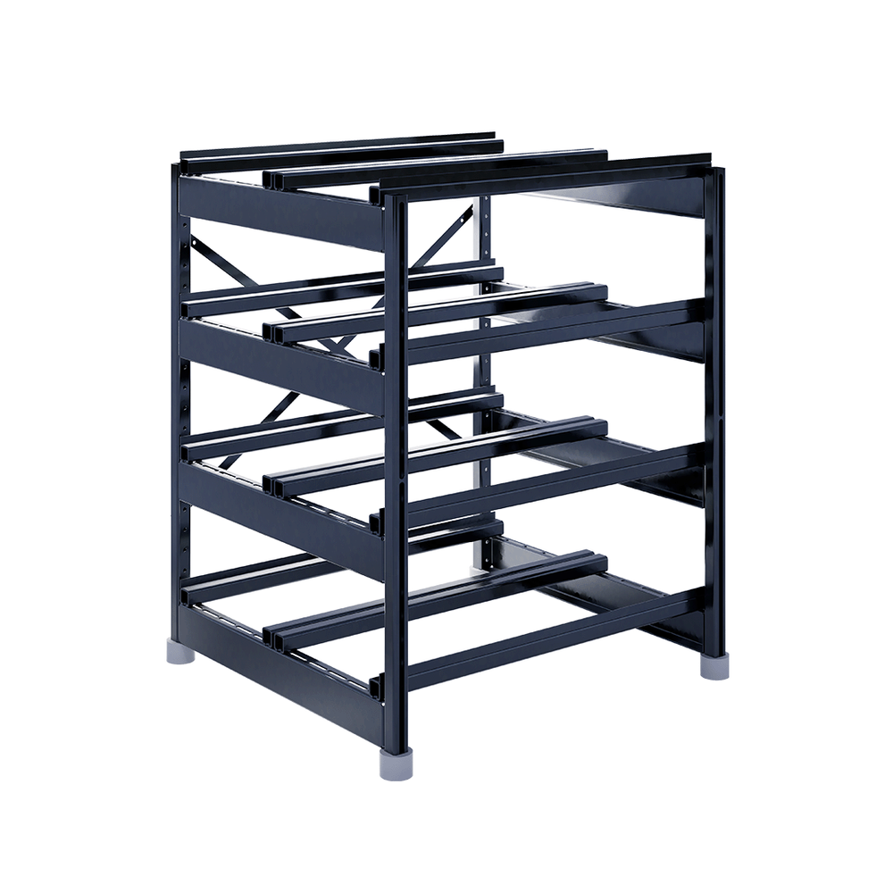 Сборно-разборная система позволяет подстраивать положение поперечных балок, исходя из размеров аккумулятора, а также перемещать ярусы в допустимых диапазонах.