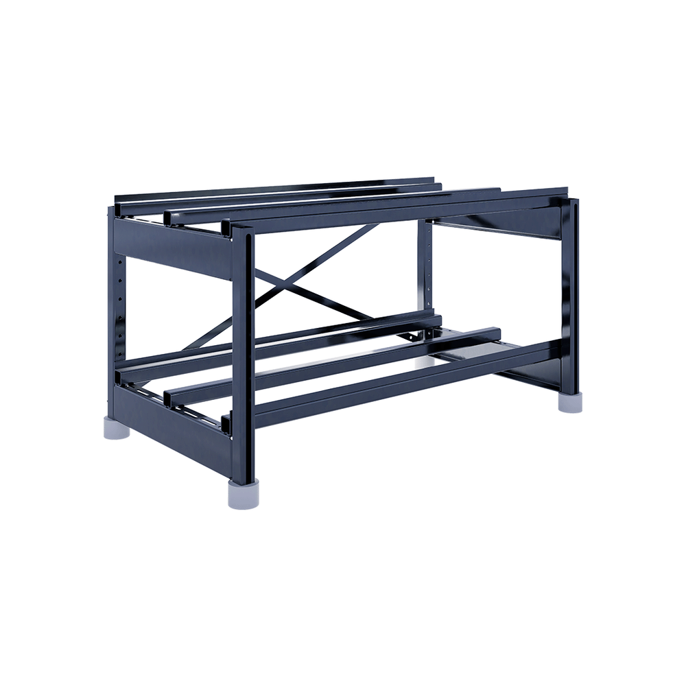 Сборно-разборная система позволяет подстраивать положение поперечных балок, исходя из размеров аккумулятора, а также перемещать ярусы в допустимых диапазонах.