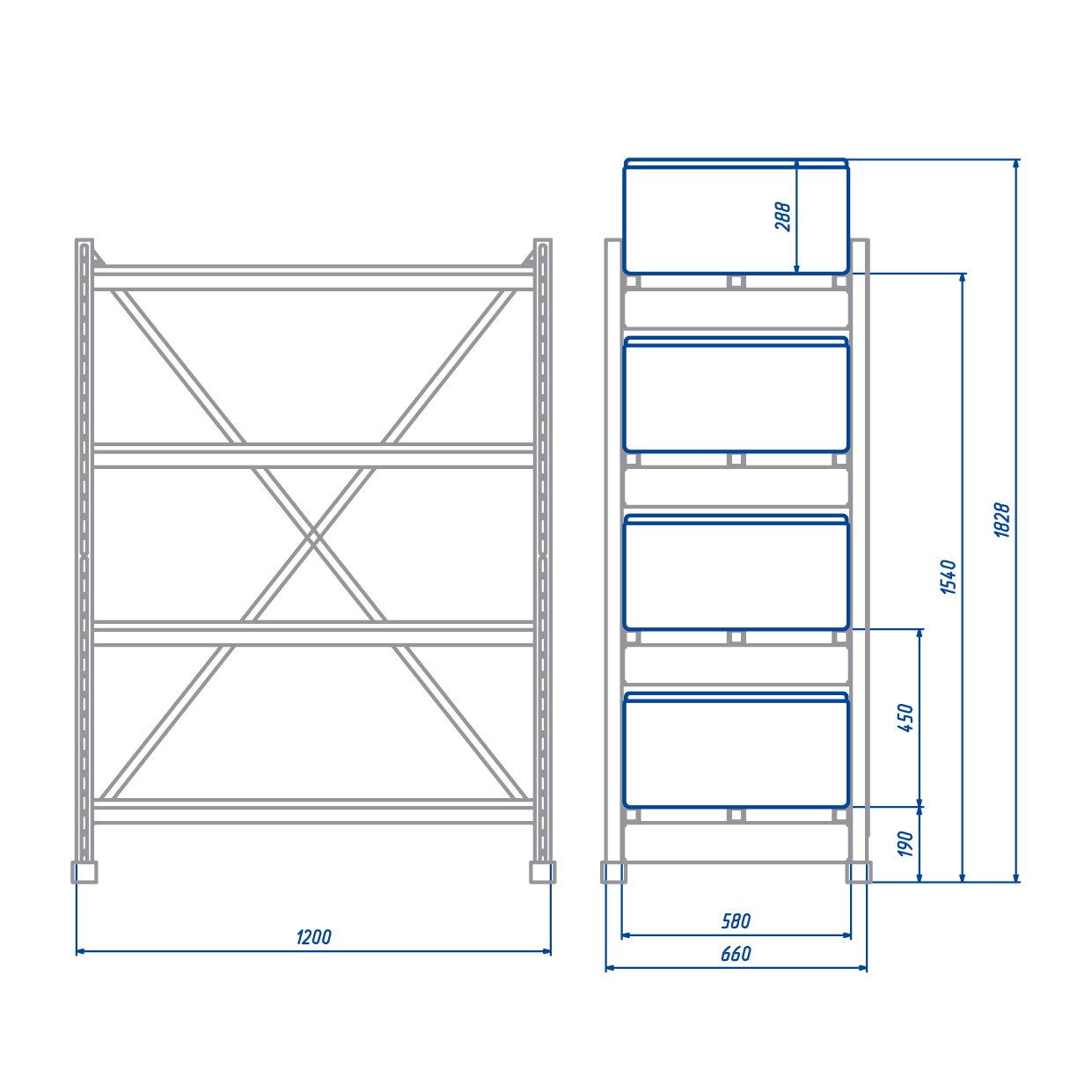 Металлические элементы стеллажа имеют кислотостойкое, диэлектрическое покрытие.