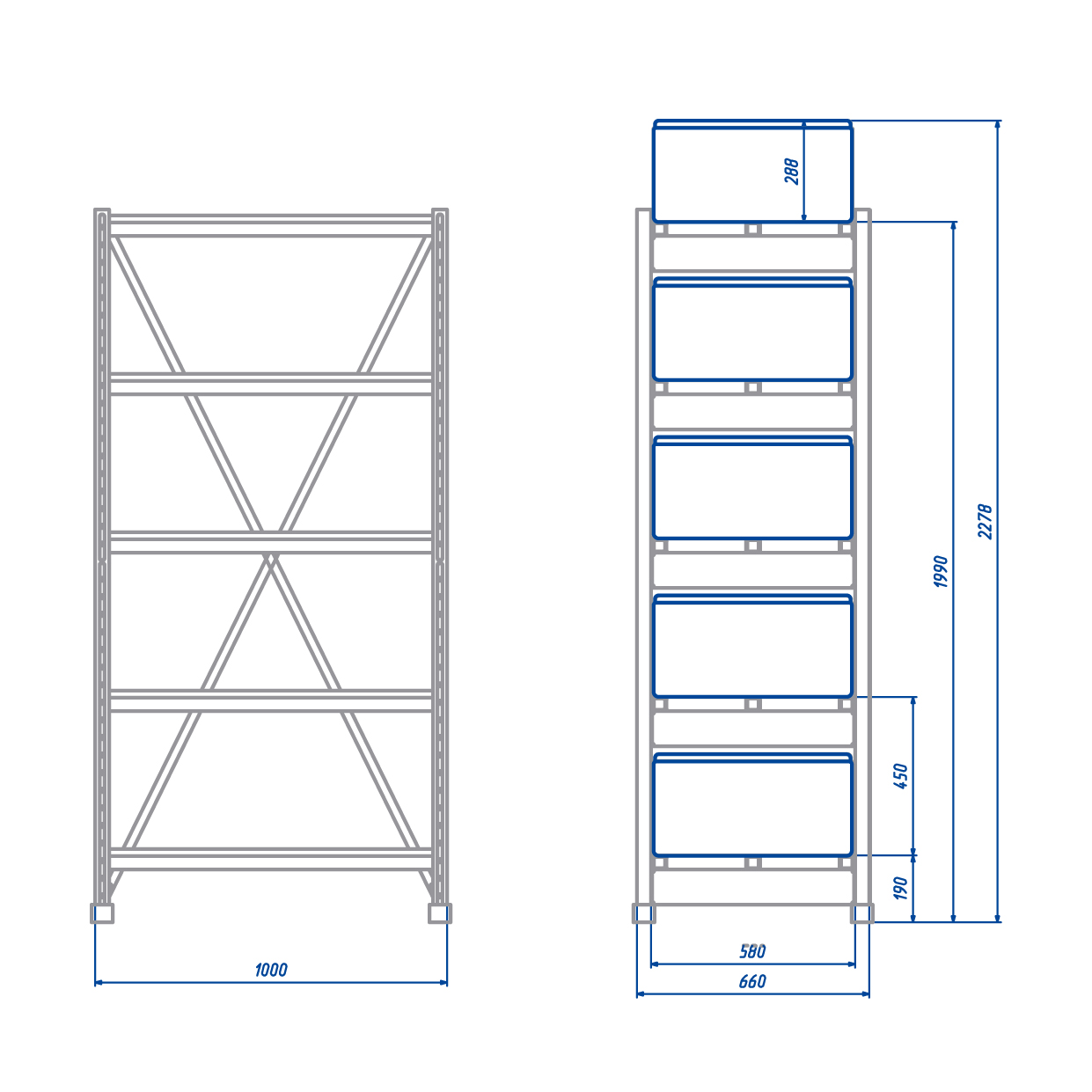 3 | Грузоподъёмность стеллажа, кг. | 2050 |