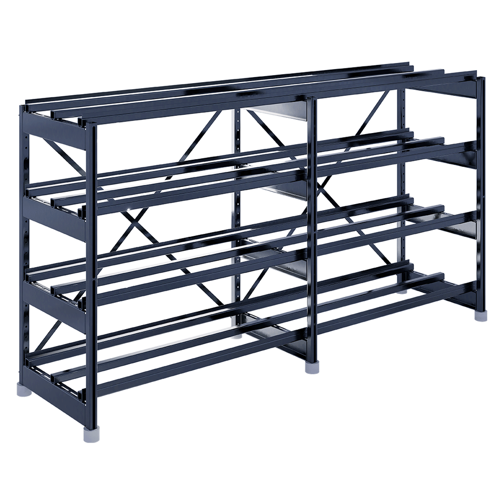 Сборно-разборная система позволяет подстраивать положение поперечных балок, исходя из размеров аккумулятора, а также перемещать ярусы в допустимых диапазонах.