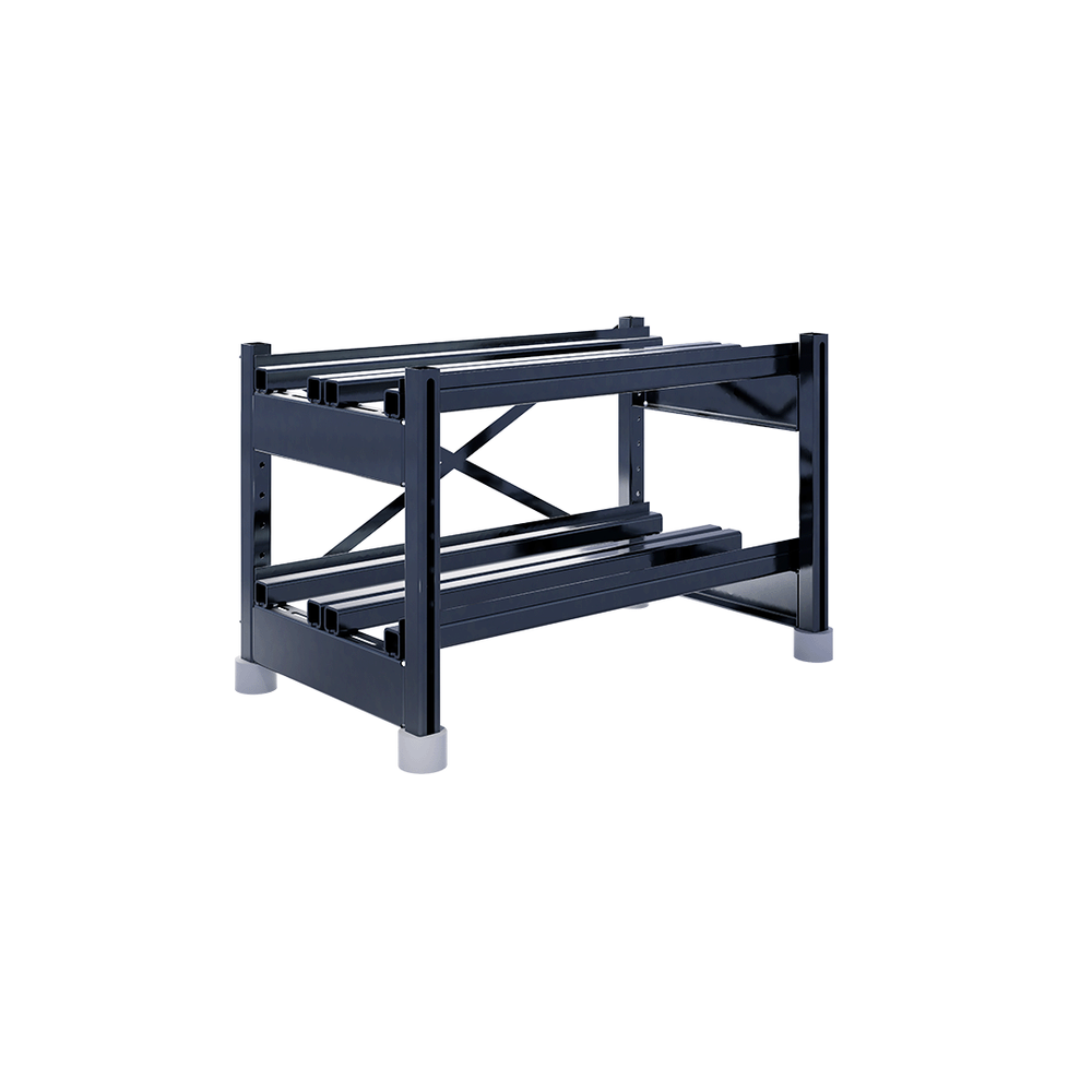 Сборно-разборная система позволяет подстраивать положение поперечных балок, исходя из размеров аккумулятора, а также перемещать ярусы в допустимых диапазонах.