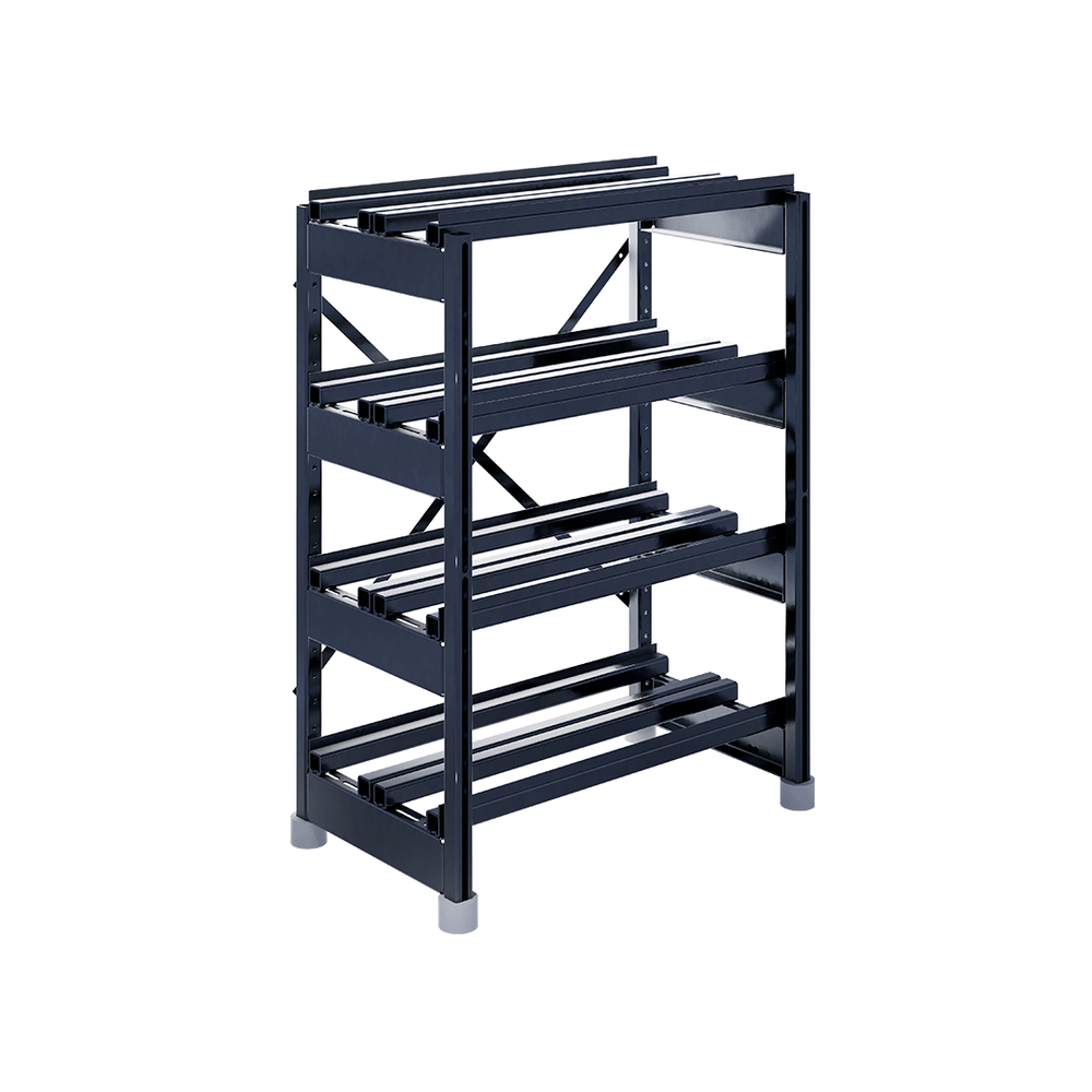 Сборно-разборная система позволяет подстраивать положение поперечных балок, исходя из размеров аккумулятора, а также перемещать ярусы в допустимых диапазонах.