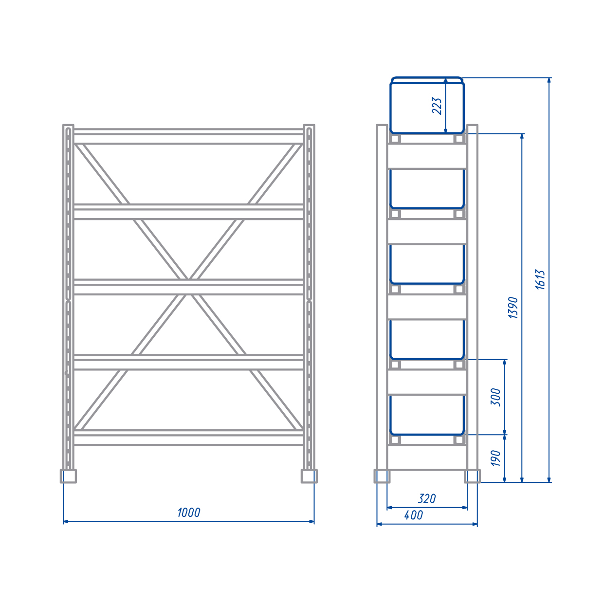 Металлические элементы стеллажа имеют кислотостойкое, диэлектрическое покрытие.