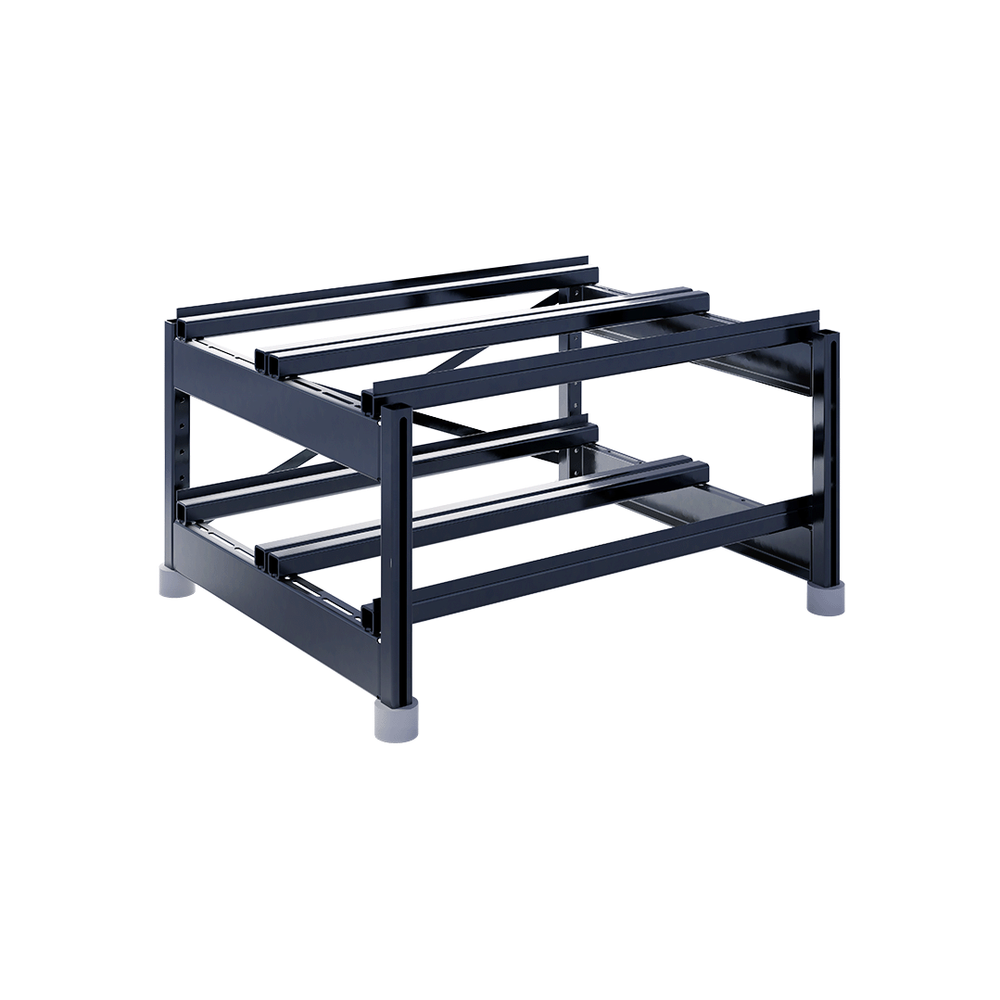 Сборно-разборная система позволяет подстраивать положение поперечных балок, исходя из размеров аккумулятора, а также перемещать ярусы в допустимых диапазонах.