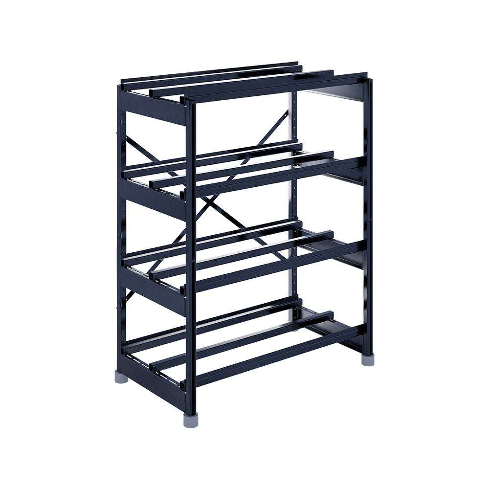 Сборно-разборная система позволяет подстраивать положение поперечных балок, исходя из размеров аккумулятора, а также перемещать ярусы в допустимых диапазонах.