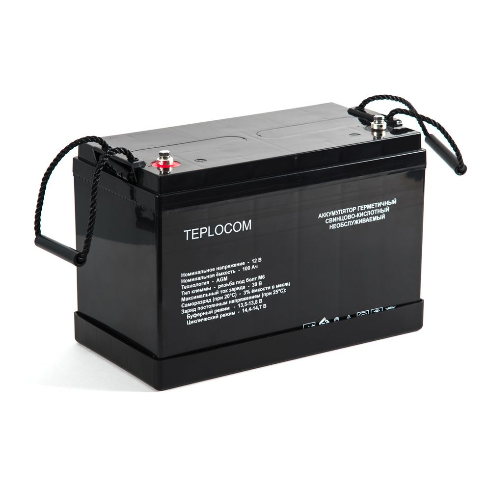 Аккумулятор герметичный свинцово-кислотный необслуживаемый TEPLOCOM 100Ач производится по технологии AGM (Absorbent Glass Mat) и предназначен для использования в составе системы резервного питания.