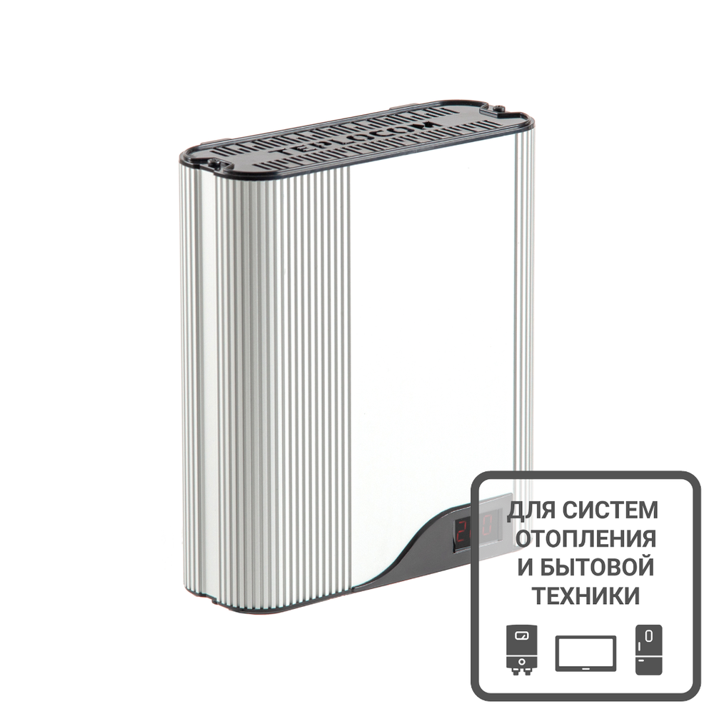 Стабилизатор напряжения TEPLOCOM ST Space Technology предназначен для работы с газовыми котлами и бытовой техникой, он осуществляет стабилизацию напряжения сети в целях повышения качества энергоснабжения. Стабилизатор обеспечивает качественную защиту подключенного оборудования. Может быть установлен на объектах различного назначения: коттеджах, квартирах, офисах, промышленных предприятиях, учреждениях и т. д.